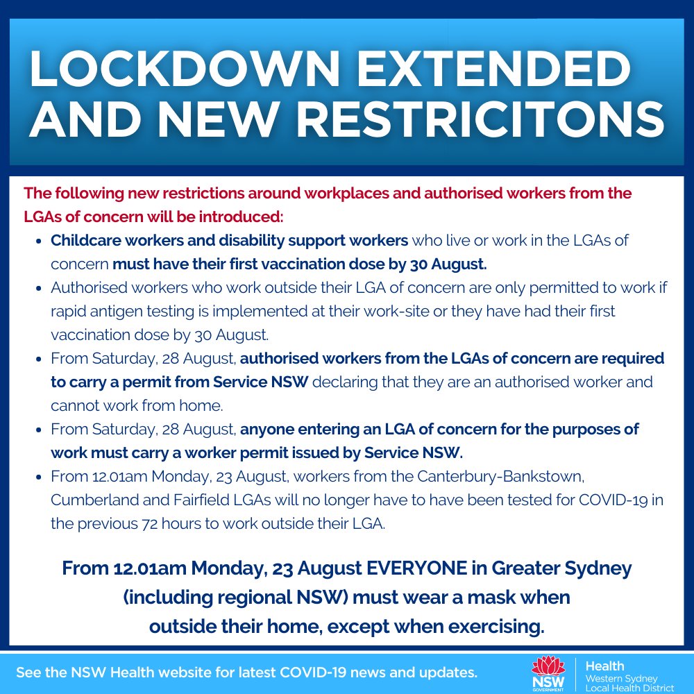 Nsw Health On Twitter Stay At Home Order Additional Restrictions Across Greater Sydney Incl The Central Coast Blue Mountains Wollongong And Shellharbour Https T Co Udrfxoqw1f